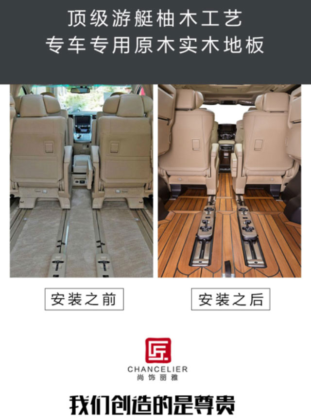 第二种是游艇柚木工艺-加装专车专用地板,一般被称为游艇工艺柚木原木加装专车专用地板,表层一般由8mm-9mm厚度都缅甸柚木原木结合游艇胶制作,板与板之间无缝而且平整。游艇工艺原木专车专用地板都优点是板与板之间平整无缝,地板表层不拼划伤,可翻新修复,高端大气典雅美观;缺点是制作工艺复杂,生产周期长,原材料昂贵,产品价格高,假冒伪劣产品较多客户不易识别正品。