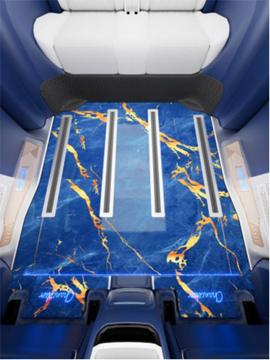 航空铝系列地板套件采取了隐藏式铝合金轨道设计,呈现出简约而精致的外观。摒弃传统设计对地板视野的占据,使空间线条感更加柔化,整体视觉更加舒适和协调。毛刷设计则避免了灰尘的堆积,保持座舱的清洁和舒适。